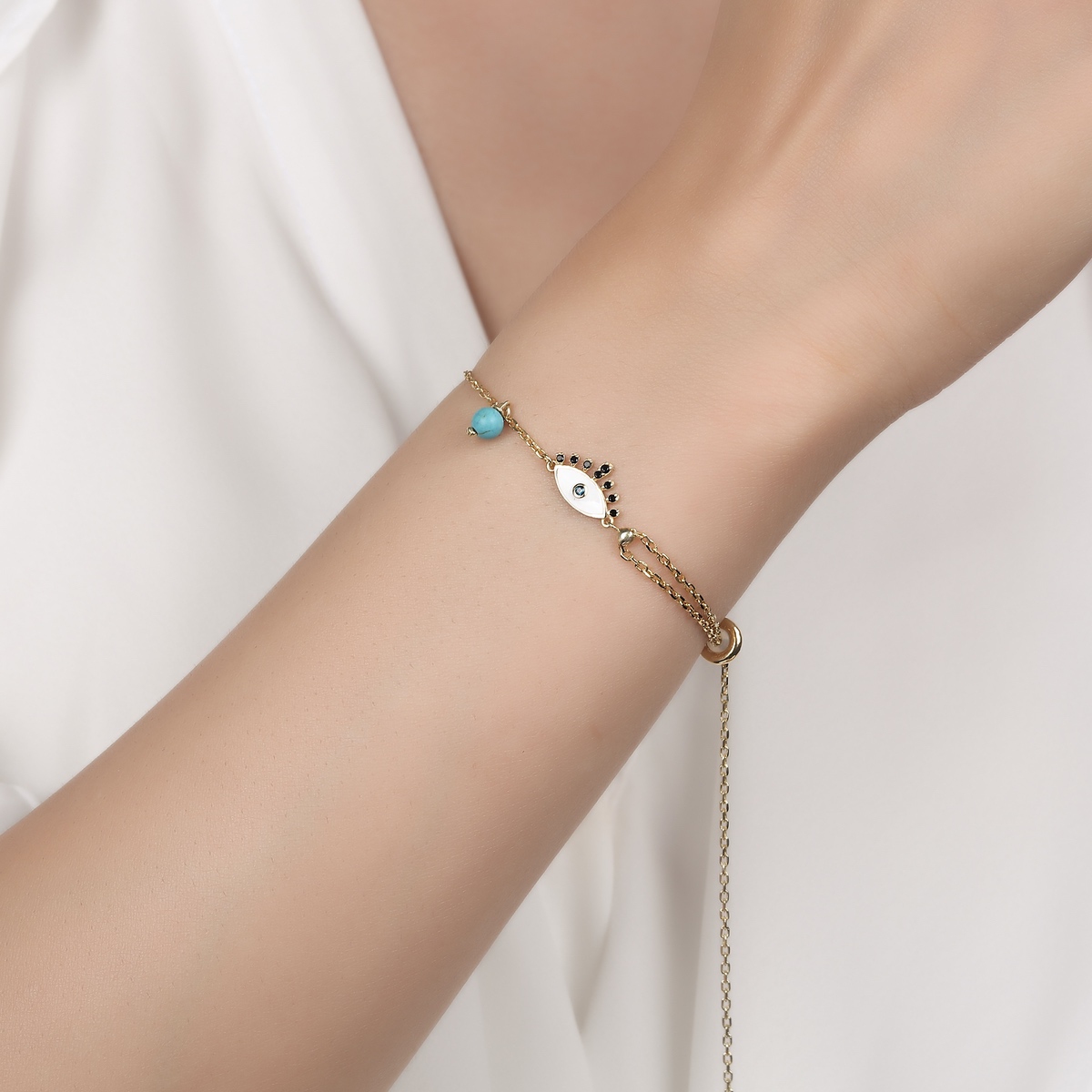 Enemel Evil Eye Silver Bracelet FREE SİZE
